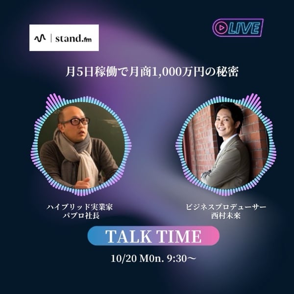 最後まで聴いて頂き、ありがとうございました! 力を抜いて楽に売れるビジネスを 作りたい方は"もっとみる"をタップ! ーーーーーーーーーーーーーーーーーー ◻︎stand.fm限定無料特典🎁 他力を活用して時短で売れるビジネスを作る オンライン×オフラインでAI時代を生き残る ーーーーーーーーーーーーーーーーーー ✅商品・サービス不要で月商7桁を実現する方法 ✅今後、何度でもビジネスを立ち上げられる思考法 ✅隙間時間でマネタイズに繋げる仕組み を知りたいという方は下記のURLから ・期間限定の『売れる人の裏側作戦会議』 ・無料の『コミュニケーション起業プログラム』ZOOMセミナー※現在受付停止中 へどうぞ! https://s.lmes.jp/landing-qr/1657771420-309MEMya?uLand=1E9Hn1 ーーーーーーーーーーーーーーーーーーー 🔸ゼロイチお客様実績 ☑︎40代薬剤師、3ヶ月で企業案件90万円売上 ☑︎30代元看護師、半年で売上1,500万円 ☑︎20代工場勤務、初月で売上20万円 etc... ーーーーーーーーーーーーーー コロナ禍をキッカケに個人で複業起業している人が圧倒的に増えており、提供者で溢れ返っています。 そんな中で売れるビジネスを自力で作る限界と、 不安を抱えていませんか? そんな勝つか負けるか分からない戦いをするより、 「複業起業したいのに、何からして良いか分からない」 「人との会話が好きな人にピッタリの起業法が知りたい」 「自分の商品サービスに自信が持てない」 という方は、 是非、期間限定の『売れる人の裏側作戦会議』をお受け取りください! https://s.lmes.jp/landing-qr/1657771420-309MEMya?uLand=1E9Hn1 ーー『各種SNS』ーーーーーーーーーーーー 【Instagram】 ◻︎ SNS弱者が勝つ為の『商社流起業術』 https://www.instagram.com/nishimura.mirai?igsh=MXJ5dnlsdWl2NWY5bA%3D%3D&utm_source=qr 【blogHP】 ◻︎西村未來(みらい)とは‼️ https://chams-mirai-nishimura.com ◻︎株式会社Chams https://chams2021.com ※全然更新できてません、すみません🙇 ーー『最後に』ーーーーーーーーーーーー 最後まで見てくださり、ありがとうございます。 僕の放送が少しでも、 ビジネスを通してこれから挑戦する方に 届いてくださると嬉しいです! __『ハッシュタグ』____________ #起業 #副業 #ビジネス #マーケティング #マインドセット