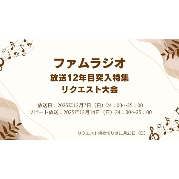 12月のファムラジオは、Podcast宛に届いたリクエストからセレクトしてお届けいたします。 レター機能よりリクエストお願いします。 よろしくお願いします。 #ファムラジオ