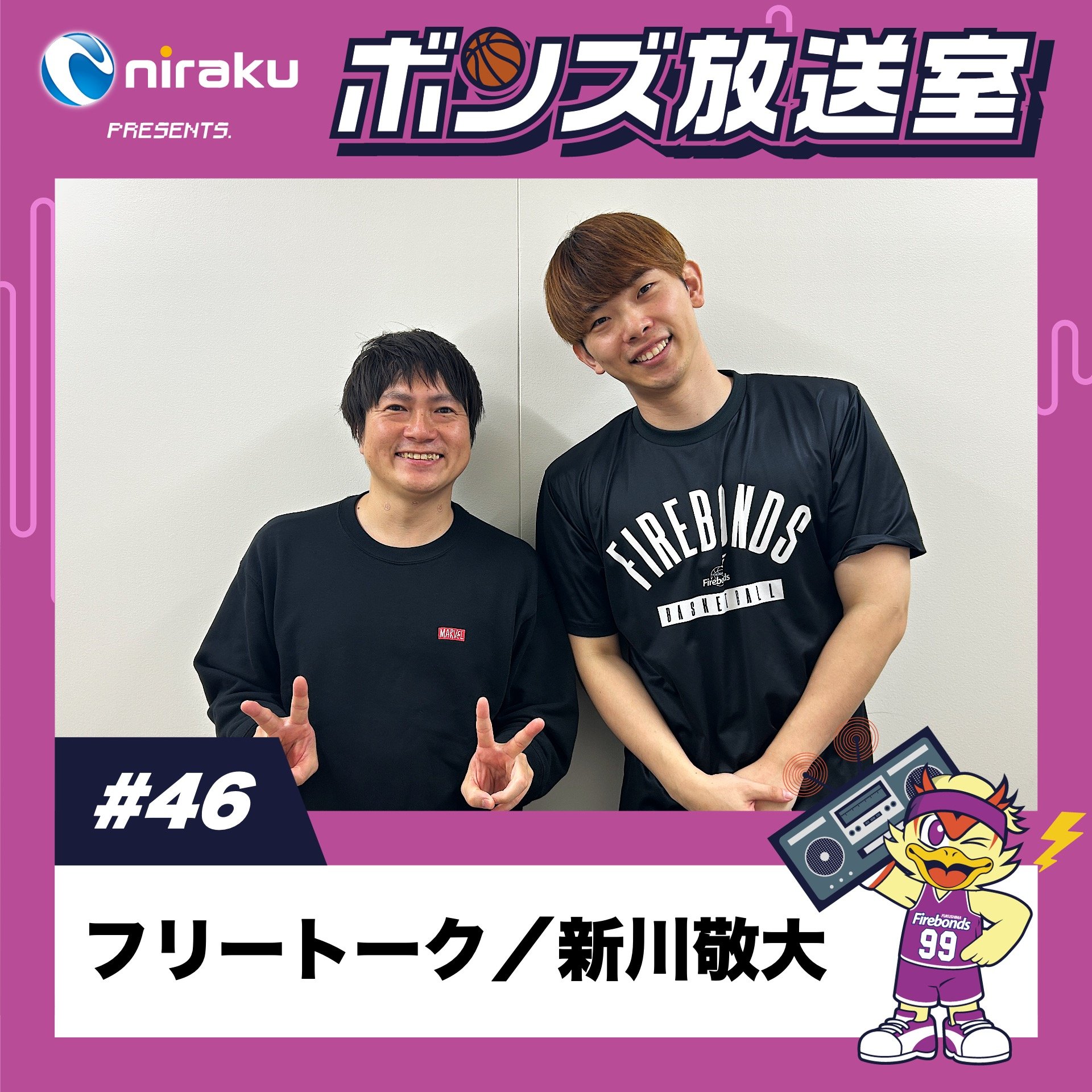 ◤ ニラクPRESENTS. #ボンズ放送室 ◢ 📻#46 フリートーク 👤#新川敬大 選手 先週に引き続き、新川選手の出演! 京北中高6年間、地元群馬県桐生市から東京まで電車で通っていたと話を聞き、テディさんとスタッフは衝撃を受けた回となりました...😨片道3時間っ💦 その他、ホテル巡りが趣味な新川選手オススメのホテルも紹介しておりますのでぜひご視聴ください🤗 #福島ファイヤーボンズ #firebonds #Bリーグ #バスケットボール