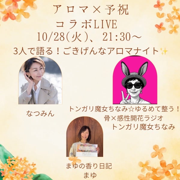 主催のなつみん✨サポートのちなみさん✨と一緒に初コラボしました💖アロマや予祝について、話ました😊本当に素敵な仲間と講演会できるのが楽しみ🥰