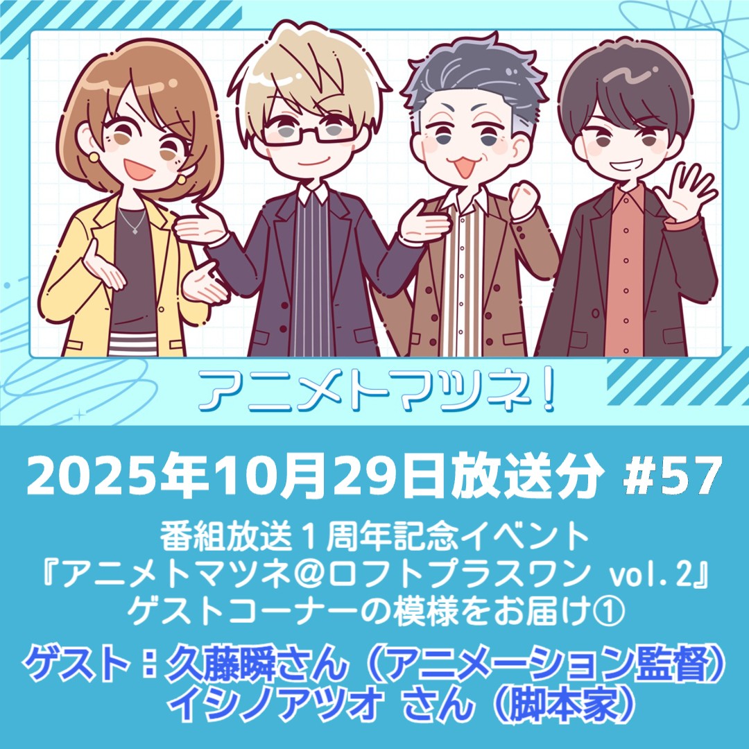 今回は10月10日に新宿ロフトプラスワンにて開催された、番組放送1周年記念イベント『アニメトマツネ@ロフトプラスワン vol.2』より、ゲストコーナーの模様をお届けします!!