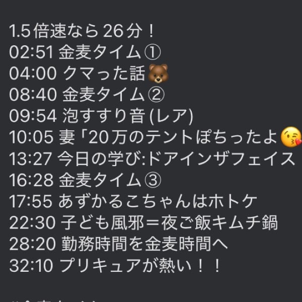1.5倍速でも聞きやすいから26分で聴けるよ!タイムスタンプ↓