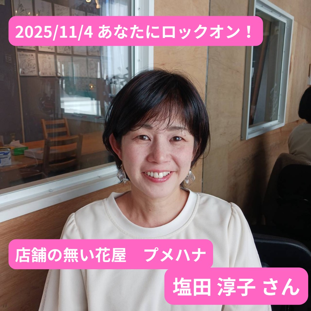 2025/11/4 あなたにロックオン! ゲスト 店舗の無い花屋 プメハナ 塩田 淳子さん #もにりば #モーニングTAMAリバー #ラジオTAMAリバー #府中から宇宙 #アレンジメントフラワー #花屋 #草月流 #いけばな #プメハナ #多摩市まちゼミ #まちゼミ クリスマスリース #府中市 #多摩市