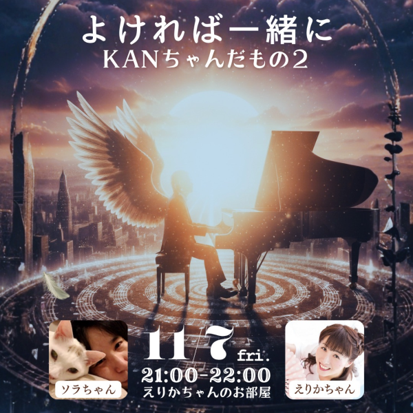 えりかちゃん!楽しい時間をありがとうございました💕 ほんとにあっという間の1時間でした♪告知にサムネ、楽曲申請、何から何までありがとうございました✨ やっぱりKANちゃんトークはいいですね〜♪そしてえりかちゃんだからこその楽しさと安心感があります😊 ぜひぜひ第3弾も、どうぞよろしくお願いします✨