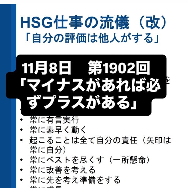 11月8日 第1902回 「マイナスがあれば必ずプラスがある」