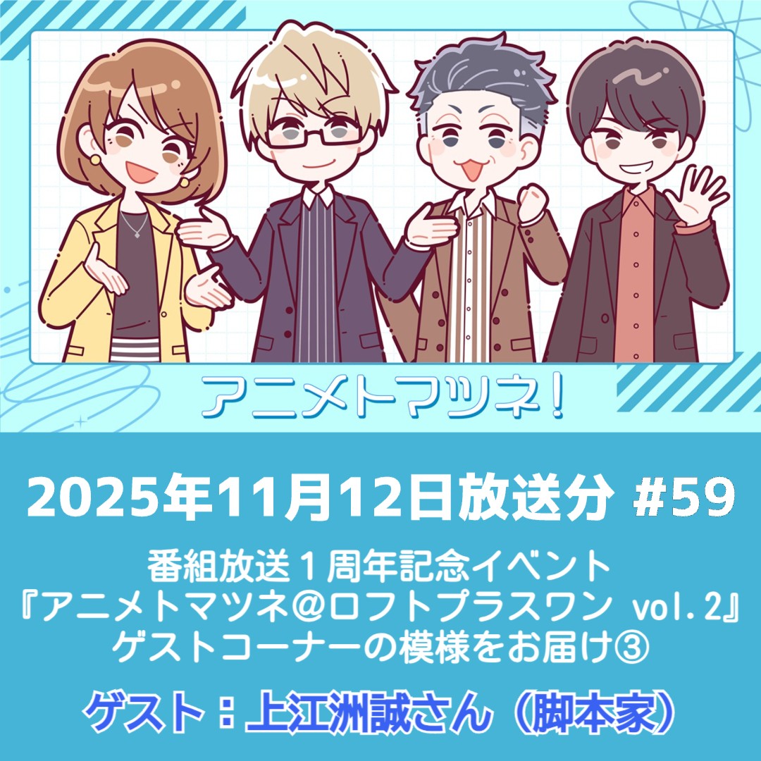 今回は10月10日に新宿ロフトプラスワンにて開催された、番組放送1周年記念イベント『アニメトマツネ@ロフトプラスワン vol.2』より、ゲストコーナーの模様③をお届けします!!