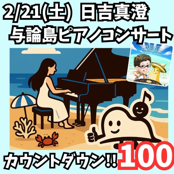 🎵日吉真澄🎹与論島コンサート🎵 来年2月21日開催、あと100日‼️ 🎹即興演奏ピアニスト日吉真澄さんの1年越しのコンサートが開催決定しました‼️ これから、X、Instagram(ストーリーズ)などでも、毎日、情報アップします✨ 100日前カウントダウン、初日の紹介はこの曲。 🌊 『ヨロンブルー 〜島のかぜ、波のひかり〜』 与論島の海をテーマにした、ひよさんの即興演奏です。 https://youtu.be/x5eAC-Jd-OI?si=CUtIL7gdLRplZxuw 実はこの曲、ひよさんがまだ与論島に来る前、 写真や映像の“イメージだけ”で生み出された音。 それなのに、海の透明感や風のぬくもりがそのままピアノから立ち上がるような、 まさにヨロンブルーの音色。 そして100日後。 ひよさんは、小中高校と、与論島の5つの学校で訪問演奏を行い、 島の空気、人、子どもたちの声を全身で感じてから本番のステージへ。 与論島を実際にめぐって、島の子供たちに接して、ひよさんが感じた与論島をピアノでどう表現してくれるのか、ぜひ一緒に見届けてください。 まずは、ひよさんの即興演奏「ヨロンブルー」ぜひぜひ、お聞きください🏖️ (YouTube「ピアノ ヨロンブルー」で検索!) #日吉真澄与論島ピアノコンサート #日吉真澄 #ピアノ #即興演奏 BGMは、日吉真澄さんのピアノ「ヨロンブルー~島のかぜ、波のひかり~」 です。こちらで聞けます⇒  https://youtu.be/x5eAC-Jd-OI?si=CUtIL7gdLRplZxuw 📻ひよさんのチャンネル『エモくて沁みる深夜のピアノライブ』⇒  https://stand.fm/channels/5edf0b0d9c38bc0326ee25f4