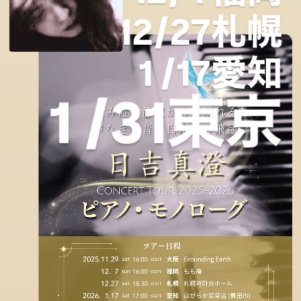 ひよ日吉真澄🎹11/29大阪、12/7福岡、12/27札幌