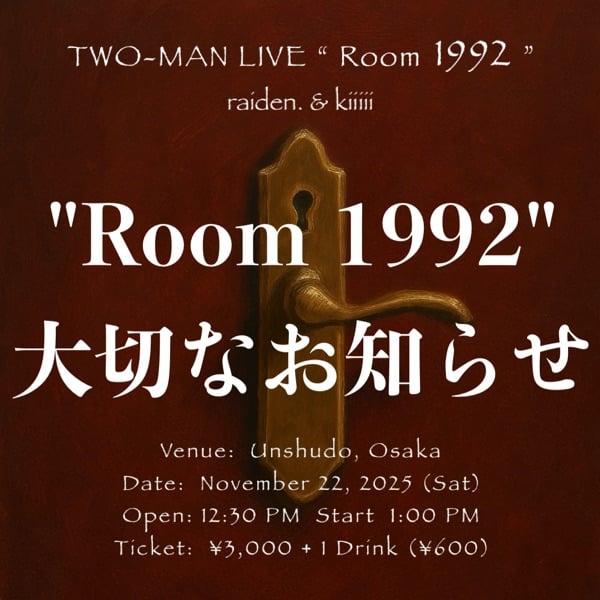 TWO-MAN LIVE "Room 1992" 大切なお知らせ🗝️