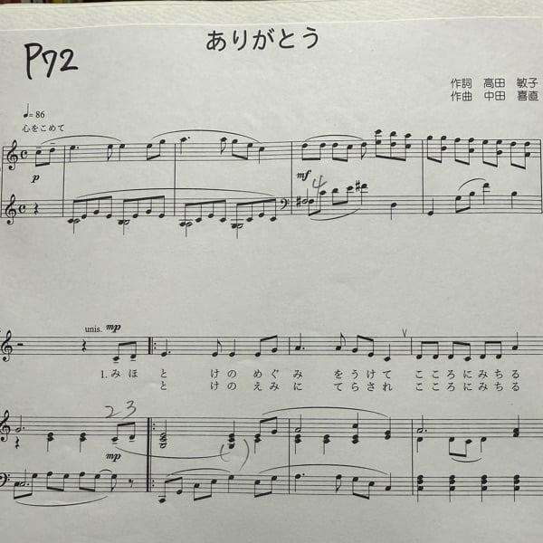 ありがとう ピアノ伴奏