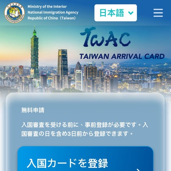 今回知ったのですが、先月から台湾は入国申請カードが廃止になり、事前にオンライン申請になってるんですってね!