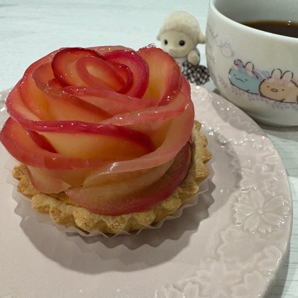 以前の配信でみなさんに相談した件のご報告です! ありがとうございました!! 赤ちゃん可愛かったし、友人も幸せそうだったし、至福のひとときを過ごすことができました。 私が昨日1人で食べたダプレルルのりんごのチーズケーキを添えて🍎 ▽助けを求めた配信はこちら▽