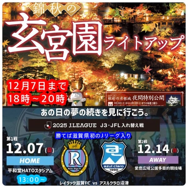 玄宮園ライトアップ、彦根城夜間公開