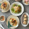 かれいの煮付け、里芋と豆腐の揚げ出しきのこあんかけ、柿柚子など