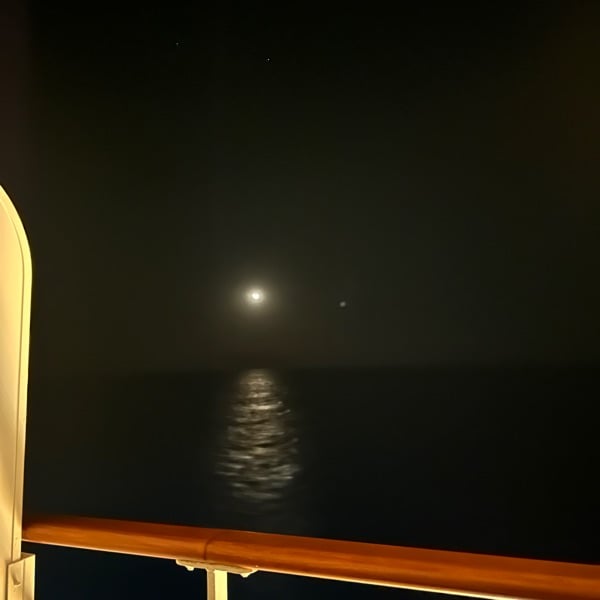 写真が船の中で夜中に呼ばれた月。 月に起こされて撮った写真。 写真の時間を見てみたら2025.11.15 2:41だった。