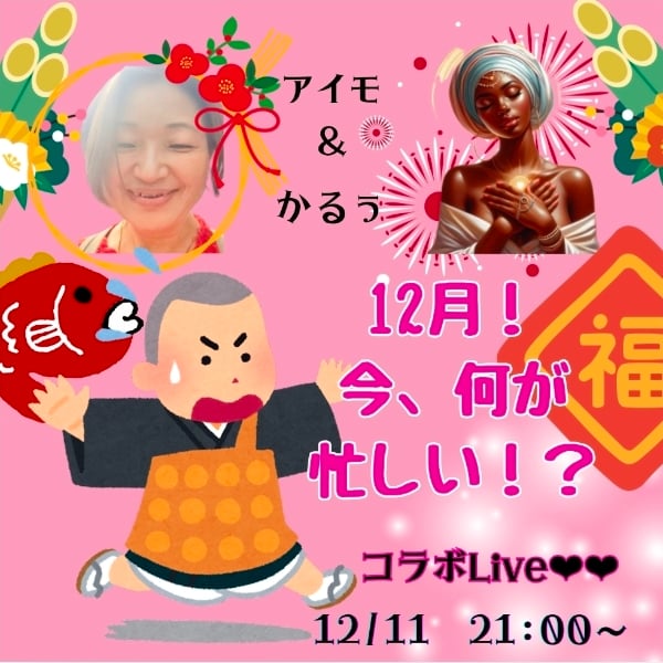 12/23 21:00~です。アイモさんのチャンネルでお話します。是非お耳より下さいね🎵