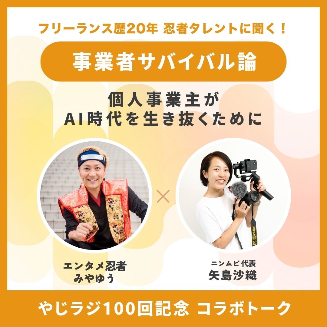 動画制作サービス「ニンライン」代表のやじ(矢島沙織)がお送りする、愛と情熱で活動する事業者さまが元気になれるラジオ。毎週(土)ひる12時公開。