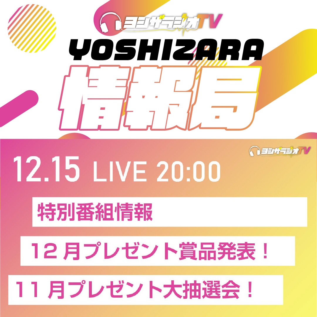 YOSHIZARA情報局は、ヨシザラジオTVの「旬」を伝える情報番組です!