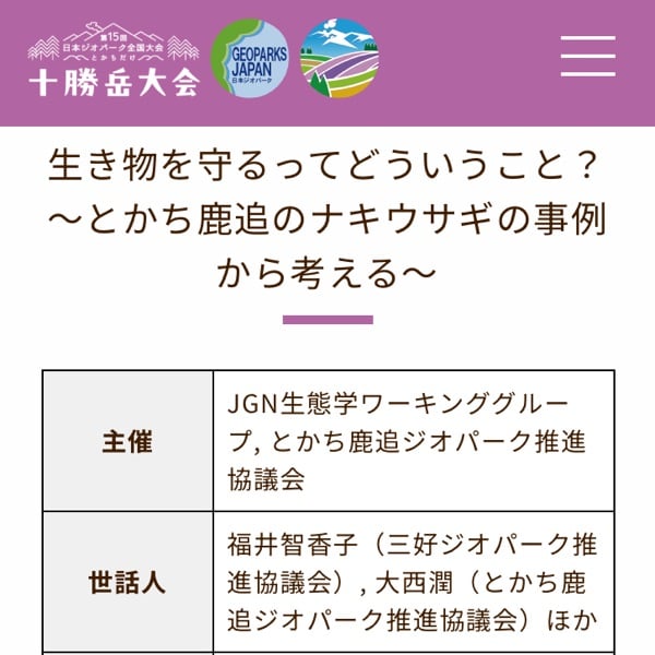 とかち鹿追ジオパークと十勝岳ジオパーク編の第3回目は、ジオパーク全国大会の分科会に向けというお話。 画像は、全国大会ウェブサイトの分科会ページのスクショ。 とかち鹿追ジオパーク