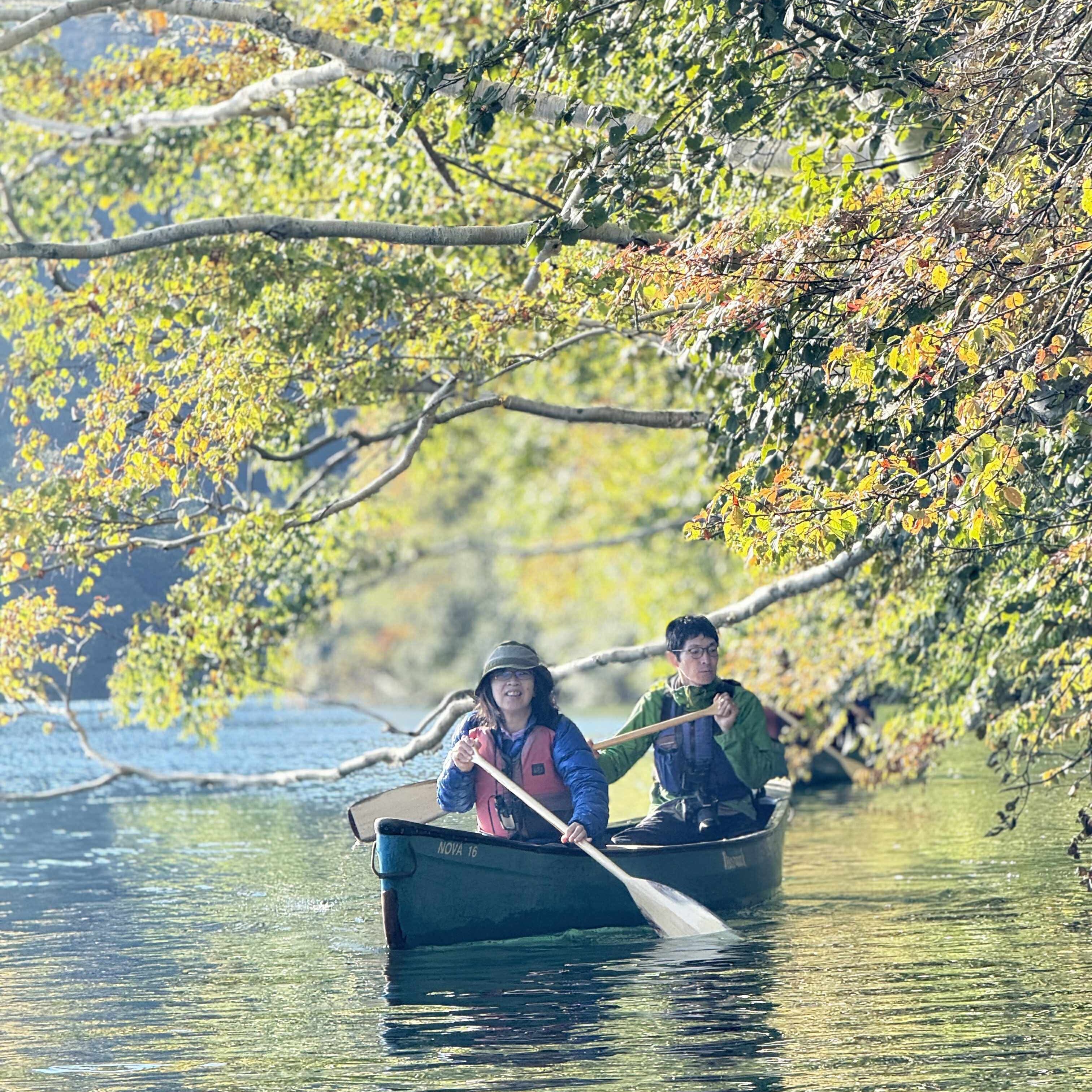画像はカヌーに乗る私。ガイドのまっつさんが撮ってくれました。まっつさん、この話の中にも出てきた然別湖コタンの準備で大忙しなのか、最近配信されていないので、この画像を使っても気づいてくれないかも?