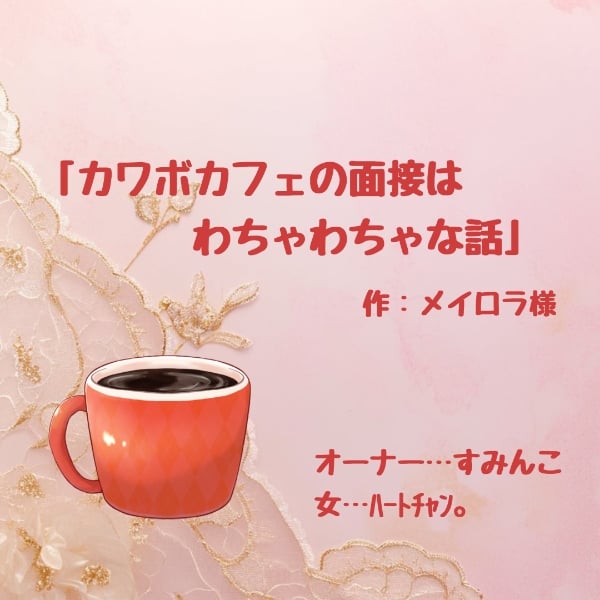 ータイムテーブルー 09:01~ 「カワボカフェの面接はわちゃわちゃな話」 18:19~ アフタートーク ✼••┈┈┈┈┈┈┈┈┈┈••✼⁡⁡⁡ 《使用台本/作者》 「カワボカフェの面接はわちゃわちゃな話」 作:メイロラ 様 https://taltal3014.lsv.jp/api-server/public/share/script/2277 ー配役(敬称略)ー オーナー…すみんこ 女…ハートチャン。