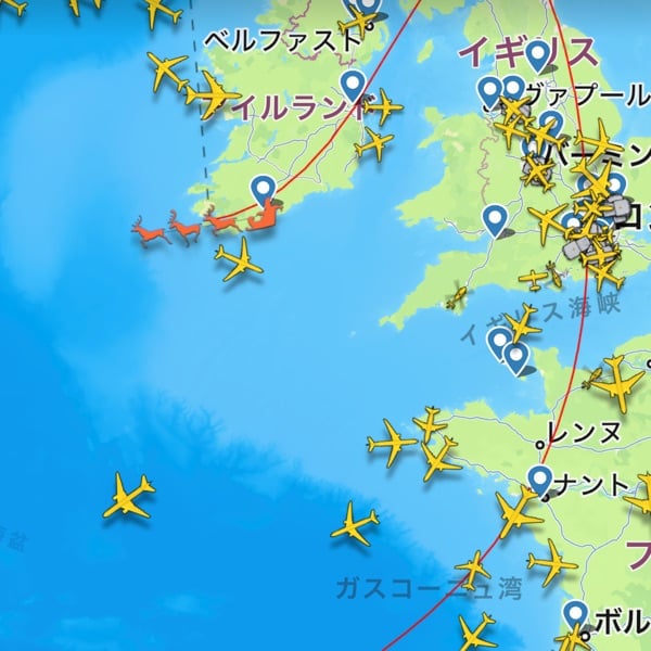さっき見直したらもうイギリス通過していたので最新のスクショにしました😆 フライトレコーダー https://www.flightradar24.com/R3DN053/3d9fb50a #メリークリスマス #サンタクロース #フライトレコーダー