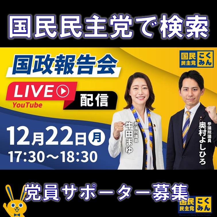 国民民主党 玉木代表 GOGOこくみんLIVE 12月23日