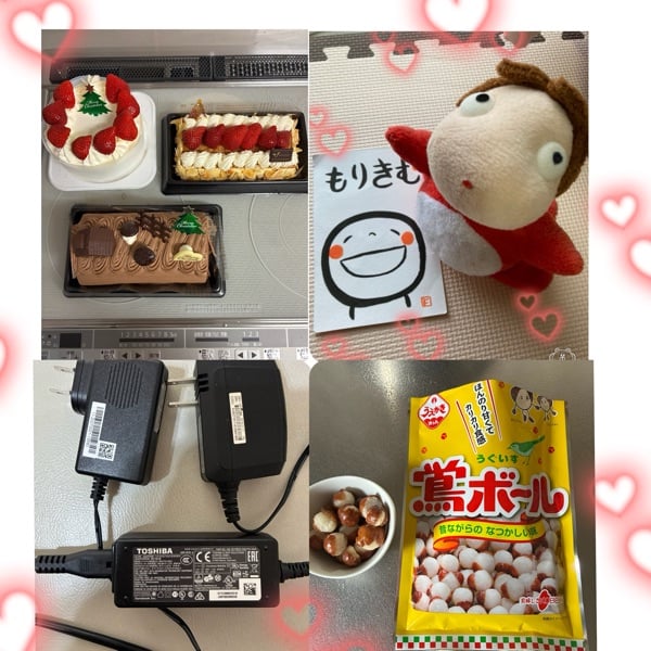 もりきむちゃん✨ おはようございます🌈✨ クリスマスケーキ🍰🍰🍰3つも✨これはやっぱり、 ずーーーーっ✨しちゃいますw おせんべいも美味しそうですね♪
