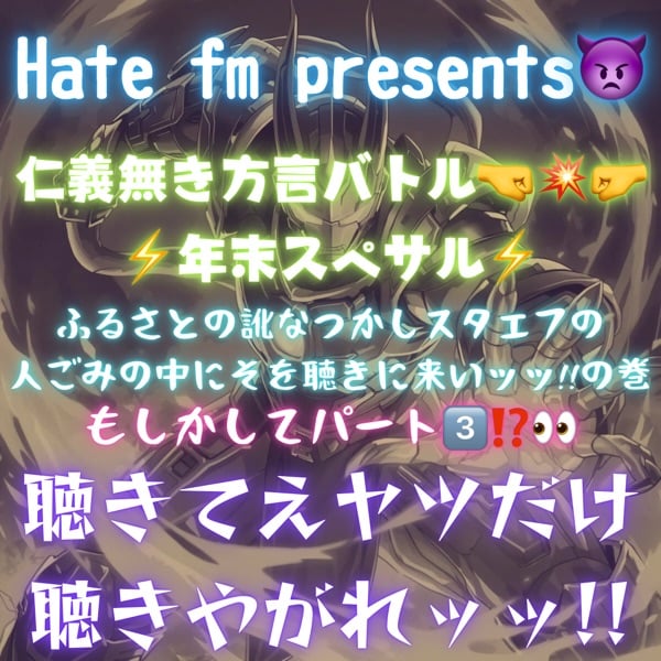 Hate fm presents👿 仁義無き方言バトル🤜💥🤛年末スペサル ふるさとの訛なつかしスタエフの 人ごみの中にそを聴きに来い‼️の巻 もしかしてパート3️⃣ #聴きてえヤツだけ聴きやがれッッ‼️ #兵斗ボンバイエ #雑談師