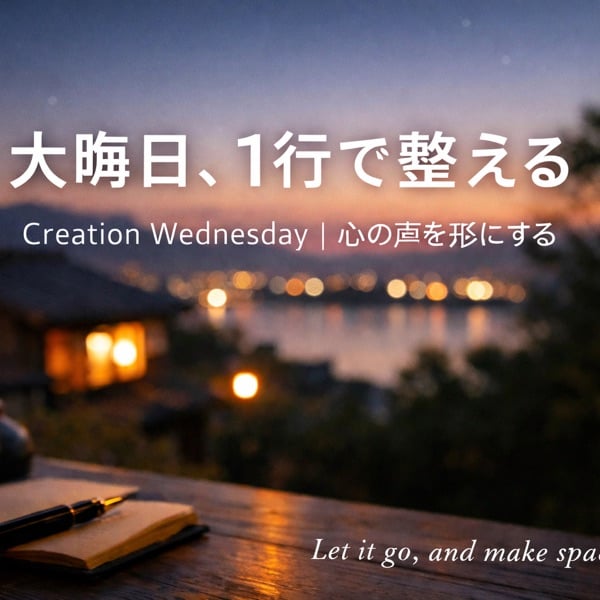 大晦日の夜。1年を完璧にまとめなくて大丈夫。 水曜はCreation Wednesday(創造水曜日)、「心の声を形にする」noteの日です。 今日は“1行”だけ書いて心を整える時間にしました。 手放したいもの、残したい気持ち、来年の0.1歩。 書くことで「静」をつくり、そこから「動」を生みましょう。 Write one line, then rest.