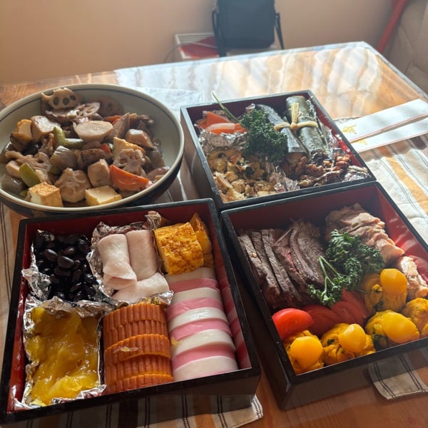 ゆかさん、あけましておめでとうございます⛩🌅 アッキーさんの講座のおかげで、私はお節の品数が増えて感謝しています。ゆかさんと一緒にお節を作れて楽しかったです🥰 手作りお節も良いですよねー。