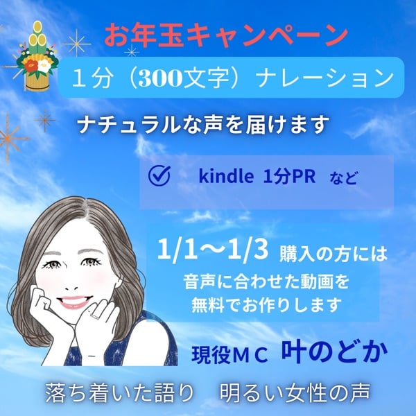 ナレーション購入で「文字入り簡易動画」を無料プレゼント!2026年1月5日まで