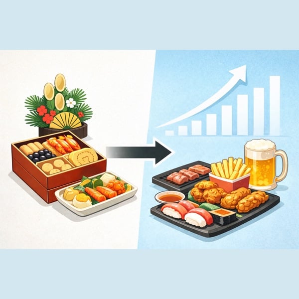 今年のお正月、子供が最初に手を伸ばしたのは伊達巻?いや、唐揚げですよね。「おせち離れ」と言われますが、市場規模は847億円で健在。でも中身は激変しています。製造業25年の視点で「なぜ選ばれなくなったか」を解説。競合は焼肉・寿司・唐揚げ。これは感情論ではなく、消費者による「カイゼン」です。