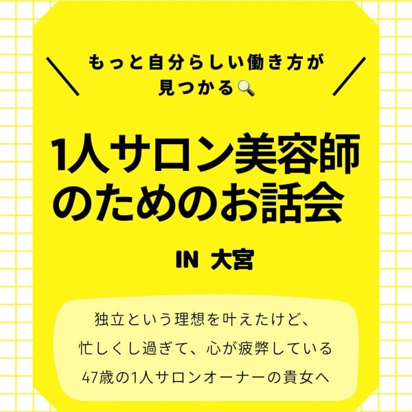 1人で悩む1人サロンオーナーさん‼︎ あなたが創るサロンの価値に氣付くためのイベント 「1人サロン美容師のためのお話会」を開催します‼︎ https://fuu2015.my.canva.site/dag6bulcw0q 2026年1月20日(火)13:3015:00 場所:埼玉県大宮 Instagram https://www.instagram.com/kami.iku.nami.go.lux?igsh=bzl3dWFvMTN0N2pi&utm_source=qr 是非チェック✅してみてください‼︎