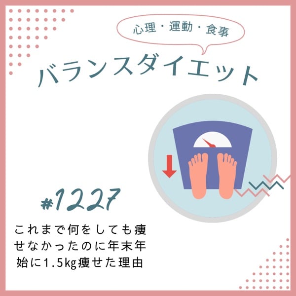 クリスマスがあっても、年末年始でも、ダイエットしようと決めた時点で素晴らしかった方のお話です。