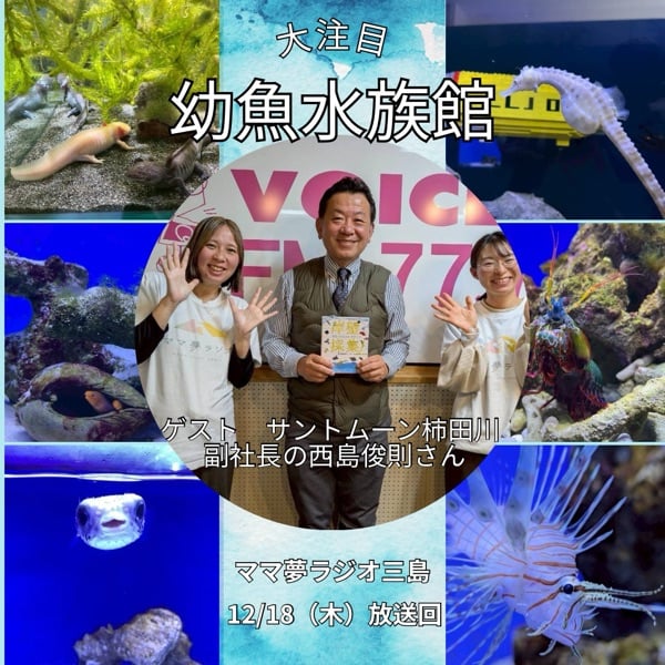 ゲストはサントムーン柿田川 副社長の西島俊則さん。幼魚水族館がなぜできたのか、魚たちの魅力について教えていただきました。