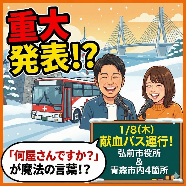 今回の配信では、明日**1月8日(木)**の献血バス運行情報を詳しくお届け!