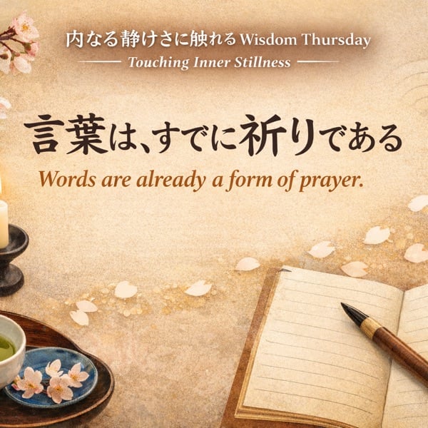 日常に戻り始めた今だからこそ、あらためて「言葉」に意識を向けてみませんか。 日本には、言葉そのものに力が宿るという言霊の感覚があります。 「ありがとう」「いただきます」「おもてなし」── 何気なく使っているその一言一言が、実は心と世界を整える“祈り”でした。 今日のWisdom Thursdayでは、言葉に流れる静かな叡智と、 英語フレーズ “Words are already a form of prayer.” を通して、 内なる静けさに触れるひとときをお届けします。 特典+α付きの関連note記事はこちらから→ https://note.com/fine_bear185/n/n2c14e07d9083?sub_rt=share_pw
