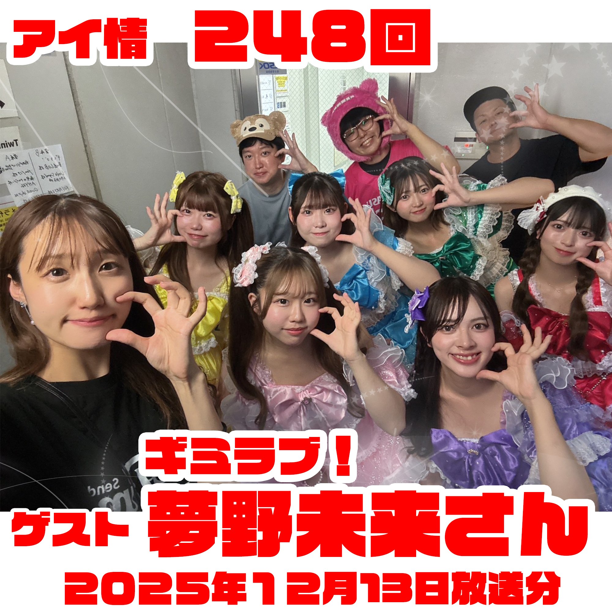 2025年12月13日放送の アイドル情報局、略してアイ情248回! ギミラブ!より夢野未来さんにゲストに来ていただきました! ラジオが大好きという未来さんなので 未来さん仕切りのコーナーもやってみました! ぜひともお聴きください!