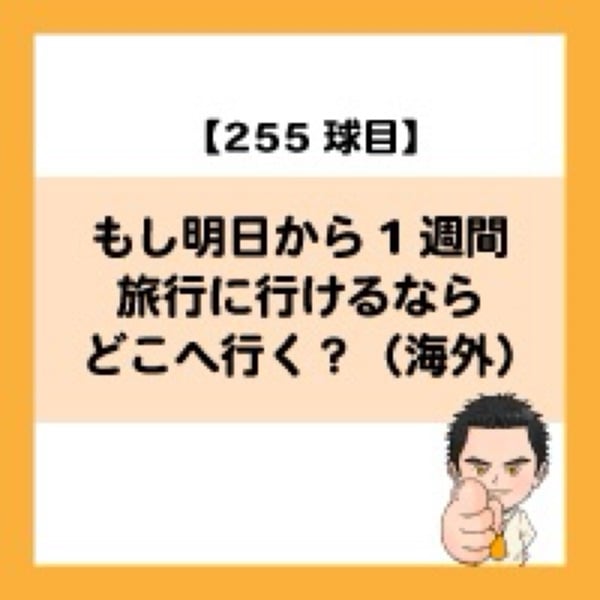 【255球目】もし明日から1週間旅行に行けるならどこへ行く?(海外)