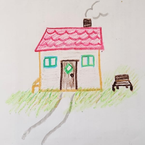 ♢写真は、自分の住みたい家を、絵本を真似て書いたものです。あまり意味はありません。かわいいから。