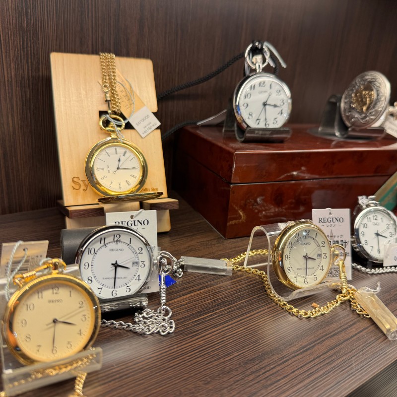 正美堂時計店のまりんと小松です! 本日は店頭から懐中時計のご紹介! この時期、式典や記念品用に懐中時計の注文、 中でも大量注文のご注文をいただいています。 腕時計と比べて数の少ない懐中時計ですが、 正美堂時計店では大量注文に対応した商品もご用意可能です! 御見積りも可能ですのでぜひお問い合わせください! ■懐中時計一覧はこちら https://x.gd/WAzbI ■正美堂お問い合わせ https://x.gd/POEin #街の時計屋さん