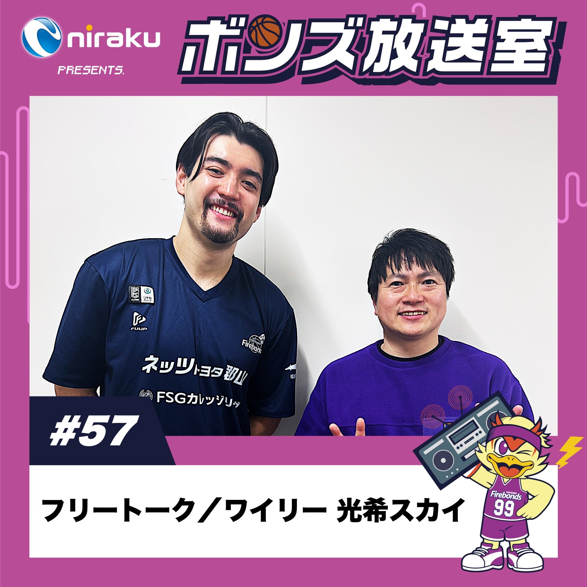 ◤ ニラクPRESENTS. #ボンズ放送室 ◢ 📻#57 フリートーク 👤#ワイリー光希スカイ 選手 ワイリー コーキ スカーイの謎なプライベートをMCテディが深掘り👀 みんな気になる日本語と英語の使い分けや意外な趣味について話してもらいました🗣️ ぜひご視聴ください♪ #福島ファイヤーボンズ #firebonds #Bリーグ #バスケットボール