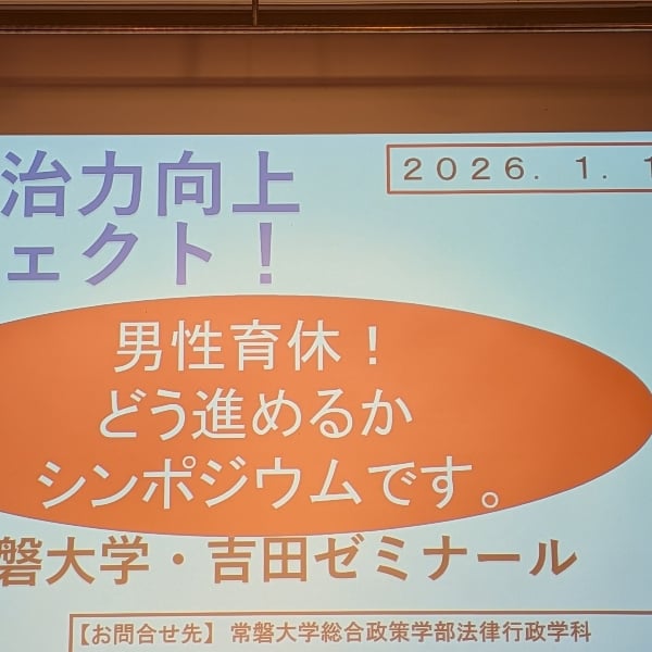 1月12日に常磐大学で開催された男性育休のシンポジウムに行ってきました ブラック企業研究家としても育休絡みの労働問題もたまに聞くので、改めて育休の知見を深めてきました #ブラック企業研究家 #育休 #産休 #常磐大学 #茨城県