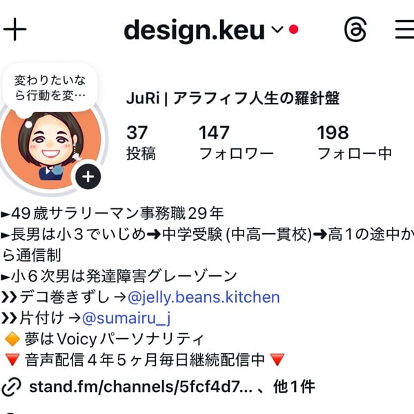 【新企画】ご質問&お問い合わせフォームズ 毎月1日20時頃からのライブ配信にてお返事いたします。 https://forms.gle/pRiAcZCmbotVPSPQ6 \ 大切なお知らせ2つ/ ┏……………………………………………………… ┓ ◆2021年9月1日から、毎日配信しておりますが ~諸事情により欠番があります~ ◆2025年9月1日から、毎月1日の20時頃から ライブ配信をします。 〜アーカイブはメンバーシップ会員様限定公開〜 ┗……………………………………………………………┛ ◆マンスリースポンサー様(1/1〜31) カフェドカオリ オーナー 剱持英子さん ◆三越カルチャーサロン www.mitsukoshi.co.jp/culture/ ◆世界平和音楽祭実行委員会 lebenbach3739@icloud.com ◆レーベンバッハ音楽企画 https://lebenbach.com/ ________ 井上敬一 西宮講演会 特別対談動画 ▼お申込みはこちらから▼ https://taidan-nishinomiya.peatix.com/ ________ 🔶『個人スポンサー様』募集中『壁打ち権』販売中 https://sumairuj.stores.jp/ ________ ♦️Youtubesチャンネル♦️ すまいるクリエイター JuRi https://www.youtube.com/channel/UCdPsEKLRs9yXlWB1QaNAJGA _______ ◆世界はあなたの仕事で出来ている 働くあなたの応援団長 朝倉千重子先生 https://voicy.jp/channel/2074 ◆トップセールレディ育成塾(TSL) https://www.asakurachieko.com/ _______ 🌈JuRist (じゅりすと)🌈 会員No . 0. Izumiさん 1. ゆふこれたかさん 2. 珠美さん 3. テニバカさん 4. ラル バハドゥール やまもとさん 5. 高橋 アキさん 6. ともちんさん 7. 藤井 布美子さん 8. yukkyさん 9. ほめほめドッグトレーナー 由香さん 10. インタビュアー 宇波 育代 元局アナウンサーさん 11. hinotake さん 12. アラカン@まさみんさん 13. マインドTUさん 14. echigoya さん 15. 中嶋 美由紀さん 16. たかやま ちえさん 17. 福田 日出男さん 18. ひろぴょんさん 19. mami さん 21. 貴生さん 22. みえっちさん 23. 綾乃ちゃん 24. Cottyさん 25. だいさん 26. ballad さん 27. REIKOさん。 28.Yumirin♫(yumirin♫)さん 29.さかいや みちさん 30.西村 和美さん 33.Kaori さん 37. もにさん 42.まさみさん 55. やまもと みちこさん 73.Mamiさん 75.Michelleさん 77.おうみんさん 83.ピース青山ゆみ さん 88.カミジマアイさん 99.めぐみ 100.えみりんさん 110.小林 恵美子さん 555.Dr.ロバーツkazuo さん 777.松浦 和子さん 1597.そんじんさん 7777.がたろさん 8888. 株式会社新規開拓 代表取締役 朝倉千重子先生 _______ ◆プロフィール◆ ✔️兵庫県宝塚市在住 ✔️サラリーマン29年目 ✔️個人事業主5年目 ✔️49歳高1小6兄弟の母 ✔️次男は発達障害グレーゾーン ✔️元バックパッカー女子 ✔️異文化コミュニケーションが大好き ✔️ハウスキーピング協会 整理収納アドバイザー ✔️日本デコずし協会 マイスター認定講師 ✔️オンライン版TSL 第7期卒業生 ◆各種SNS◆ ✔️公式LINE  https://lin.ee/BjwY0gU ✔️リンクリット(料理教室) https://lit.link/jellybeanskitchen ✔️リンクリット(片付け) https://lit.link/sumairuj #サラリーマン #パラレルワーカー #夢 #小学生ママ #小学生 #教育 #子育て #働く女性 #働くママ #起業 #母 #健康 #美容 #音声配信 #毎日継続 #恩師 #メンター #遺品整理 #療育 #サッカー #ダイエット #運動 #体力づくり #メンタル #痩せる#失敗 #対応 #片付け #整理 #自分と対話 #向き合う #通信制高校 #高校 #いじめ #天才 #息子 #子育て #ストレス #ストレス発散 #就職 #経験 #学び #転職 #アラフィフ #毎日配信 #継続 #4周年 #コレステロール #家族性高脂血症 #運動 #習慣化 #スロージョギング #思春期 #筋トレ #読書 #素直