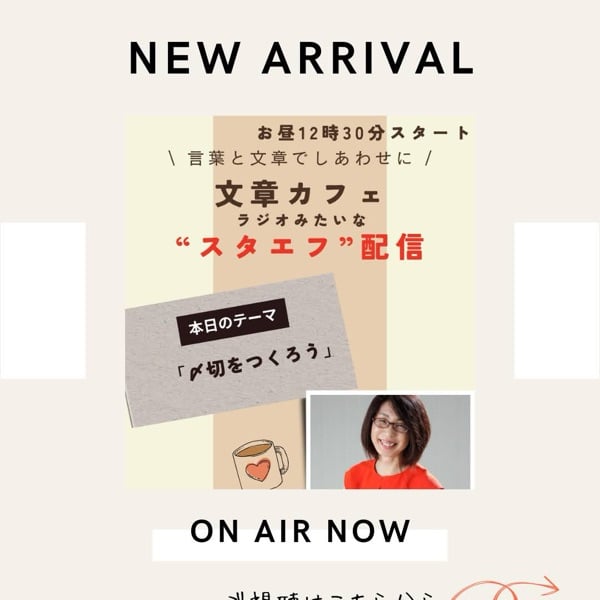 毎週月曜、お昼12時30分。小学5年生に伝わる「ひらがな文章術」で、お客様とつながる文章づくりのコツとヒントをお届けする、聴く「文章カフェ」。ゆるっと「ながら聴き」でお楽しみくださいね。