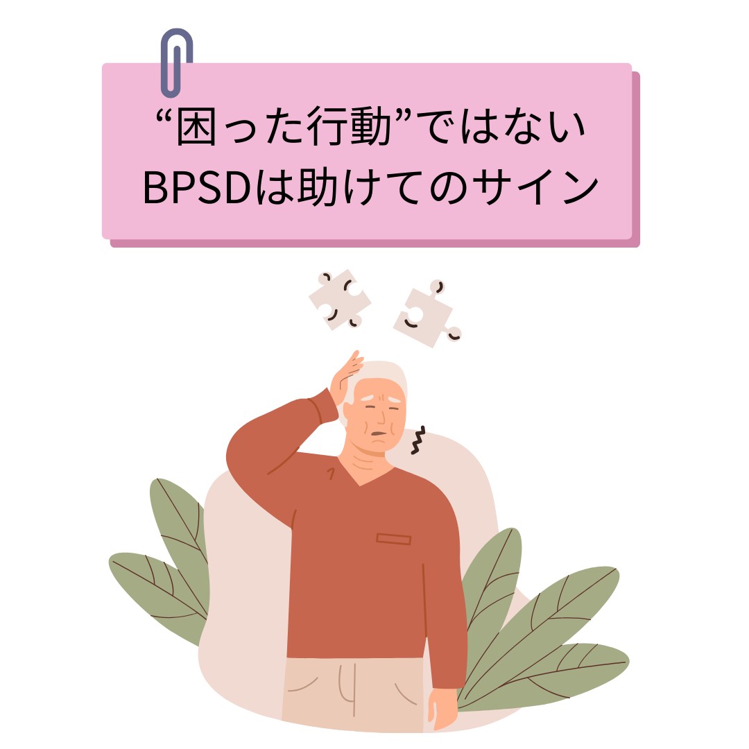 しかしBPSDは「問題行動」ではなく、本人の不安・痛み・混乱、環境ストレスなどが表に出た“困りごとのサイン”として捉えると、対応の糸口が見えてきます。