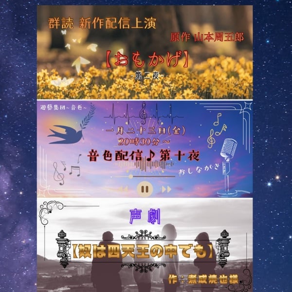 毎月第2、第4金曜日20:30頃から仲間と群読・声劇をお届けする音色配信をします📖