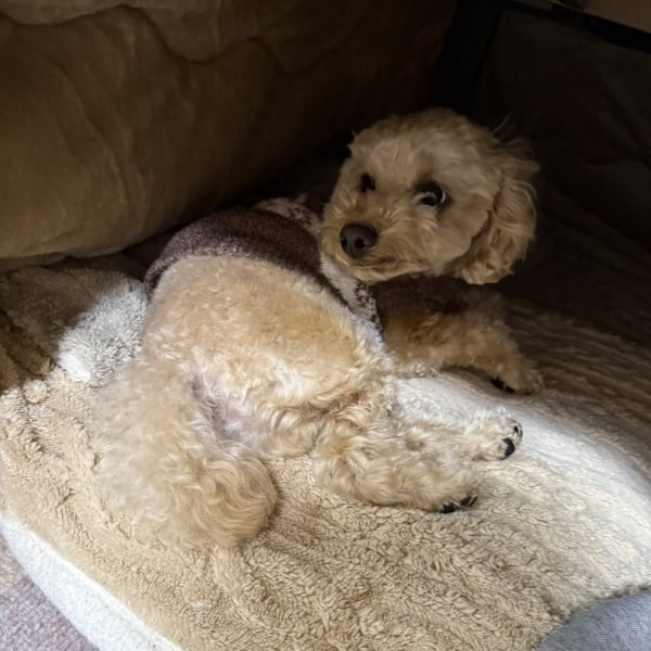 人間を駄目にするのでコタツは、我慢しています😅 チャイくん体柔らかいです🐶
