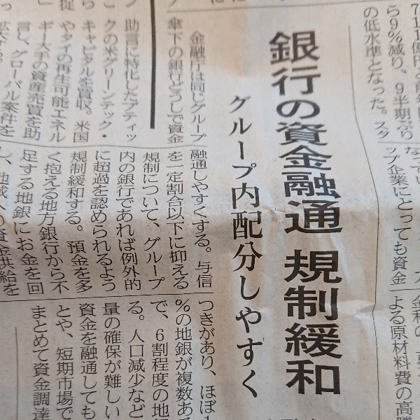 銀行の資金融通、規制緩和【日経2026,1,29,7面】